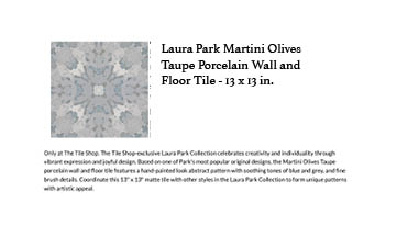 Taking talking points from her website and interviews, I wrote a script for Laura Park’s voiceover introducing her new Tile Shop-exclusive collection.
