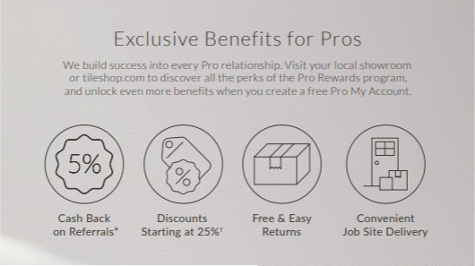 While the majority of The Tile Shop’s promotions were digital, I did work on a few print promotions. Here are some examples of headlines, copy blocks, and benefits promotions I wrote for both retail and Pro audiences.