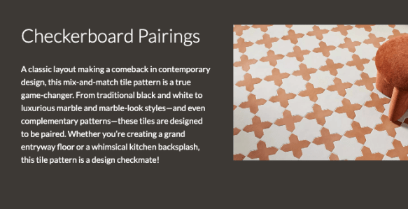 A sampling of website and product copy written for tileshop.com. I wrote unique copy for ~1,000 new products in 2024 alone.